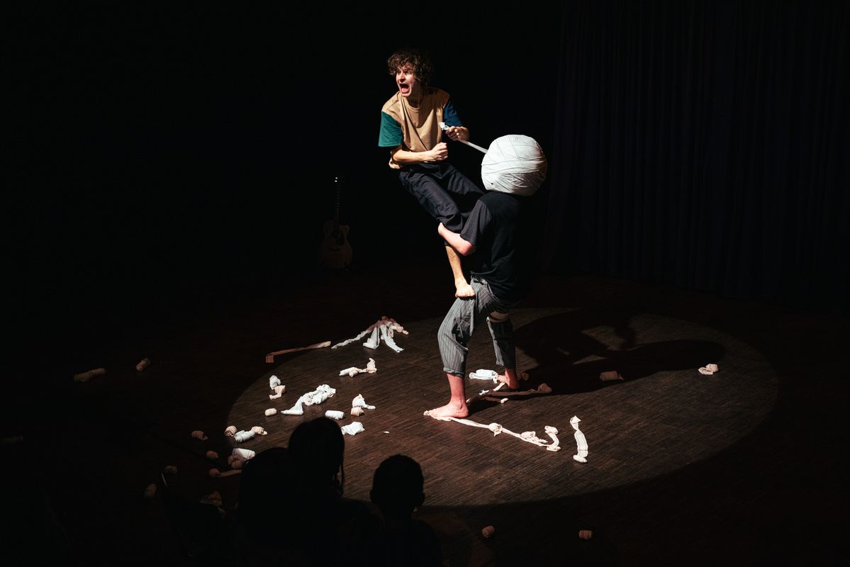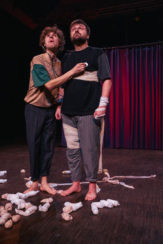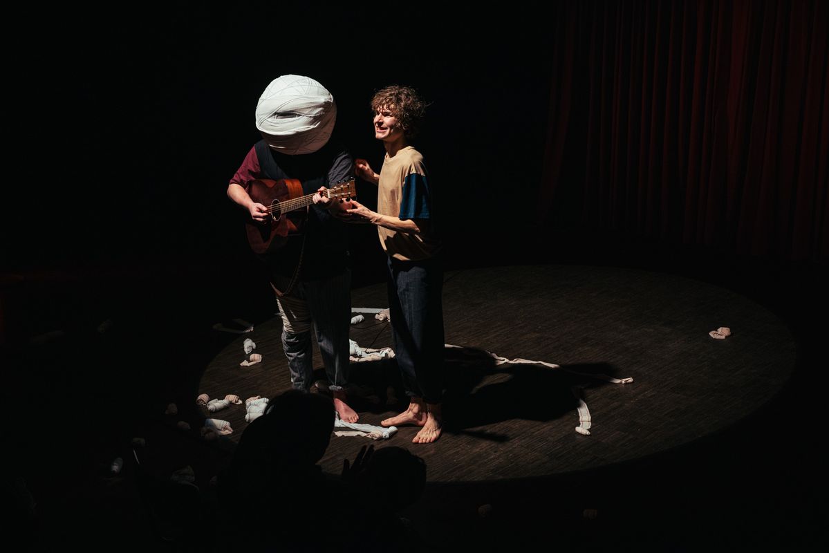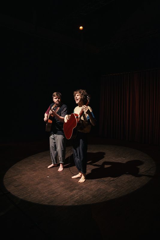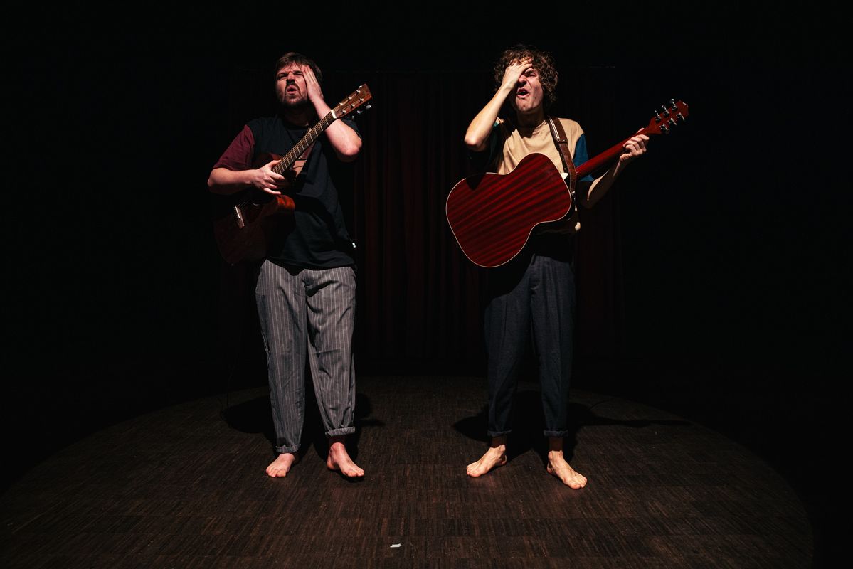 Tekst, spel & muziek: Thomas van Caeneghem & Lander Severins - Coaching: Tom Ternest - Dramaturgie: Myrthe van Velden - co-productie: SPINRAG, Schouwburg de Klap, Grof Geschud
