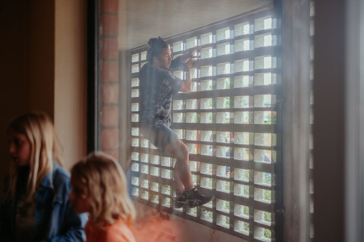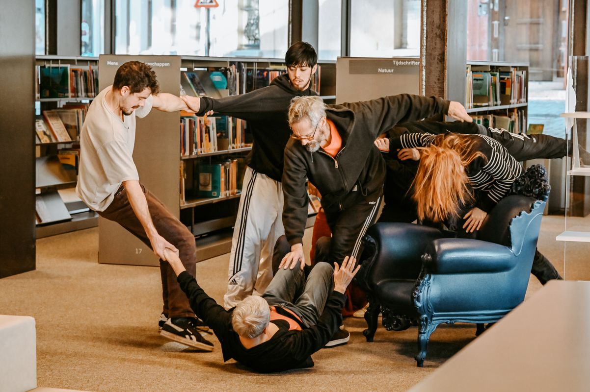 Cie Be Flat palmde drie dagen lang onze ‘living’ (vergader- en brainstormruimte dat gelijkt op een woonkamer) in om bepaalde aspecten van hun ‘Living’-creatieproject verder uit te diepen. Cie Be Flat bestaat uit tien artiesten van verschillende leeftijden en met verschillende disciplines en één hond, Dali die circus en muziek brengen waar je het niet verwacht, op het eerste zicht niet thuis hoort. Circusartiesten, audiovisuele kunstenaars, dramaturgen, acteurs en jazzmuzikanten betreden iemands living of woonkamer, een bibliotheek, een woonzorgcentrum, een café, een gevangenis, een begeleid wonen-huis en brengen een korte voorstelling voor de bewoners en (een klein) publiek. In de voorbereiding gaan ze in gesprek en verbinding met de bewoners.