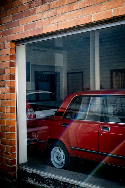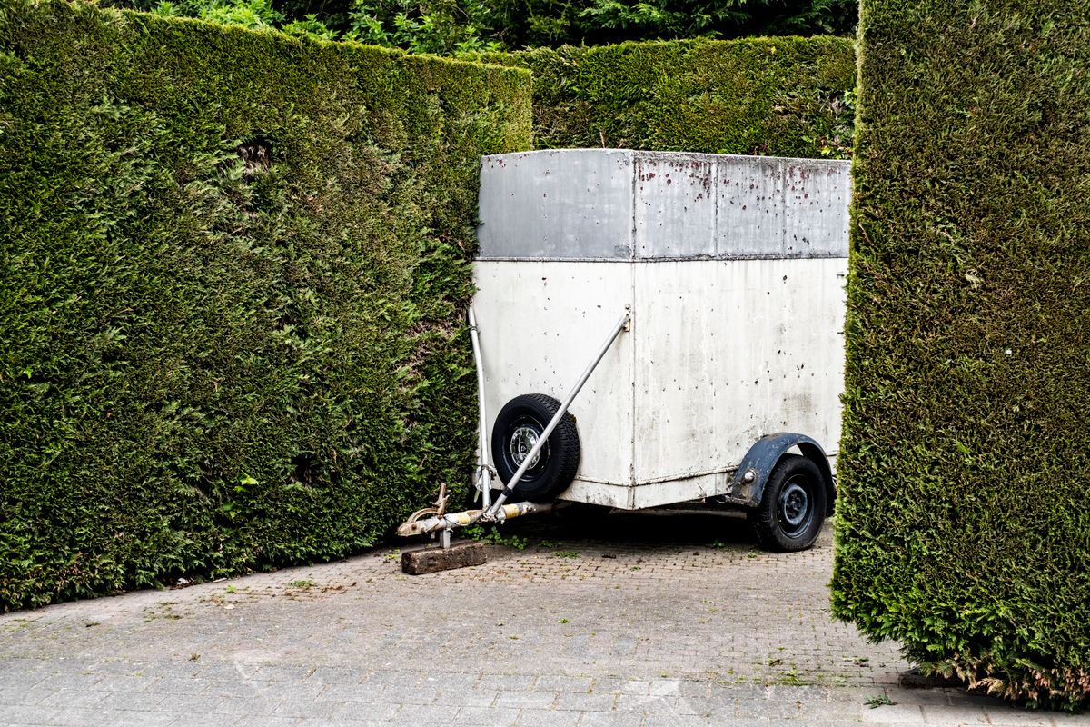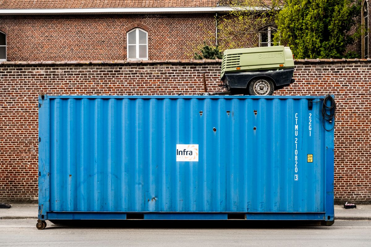 “Ik zie er een paar voor mij. Eentje van een paardentrailer die in een haag gegroeid was, alsof die daar ooit geparkeerd werd en daarna voor altijd onaangeroerd bleef. En een abstracte foto die ik trok in een klein gangetje tussen twee huizen in. Het contrast van de blauwe lucht en de grauwe muurtegels vond ik een speciaal effect hebben.