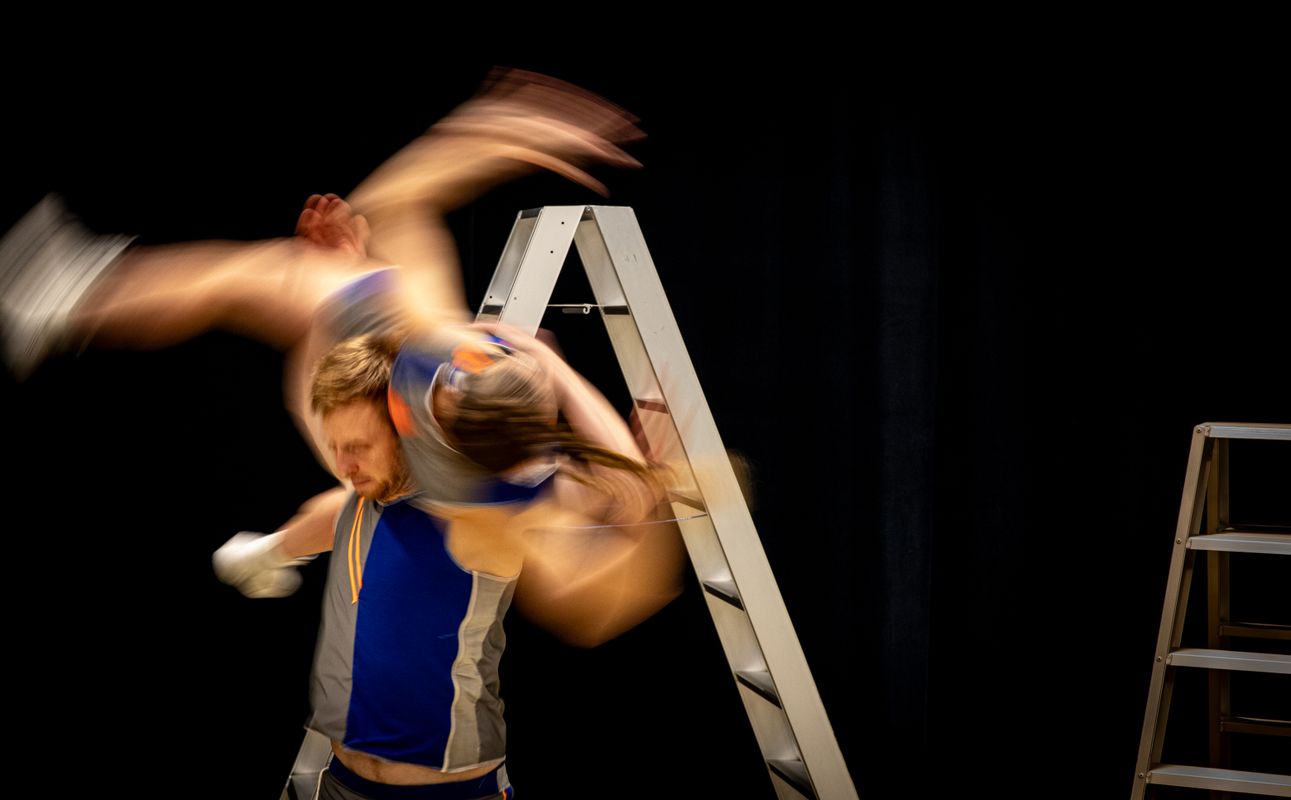 Samen wankelen ze tussen chaos en controle. In een acrobatisch spel met ladders, nerveuze sprongen en rommelige net-op-het-nippertje reddingen strijden ze om jouw aandacht, steun en lach.