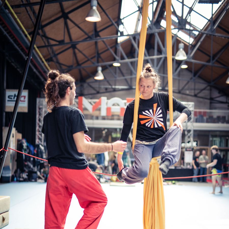 De Antwerpse circusschool Ell Circo D’ell Fuego wil ervoor zorgen dat zoveel mogelijk mensen circus kunnen zien, doen én beleven. Hun Aerial Village workshop is er speciaal voor wie wil experimenteren met verschillende luchtacrobatie technieken. Er zijn vaste trapezes en doeken om in te klimmen, zweven en draaien, allez hop!